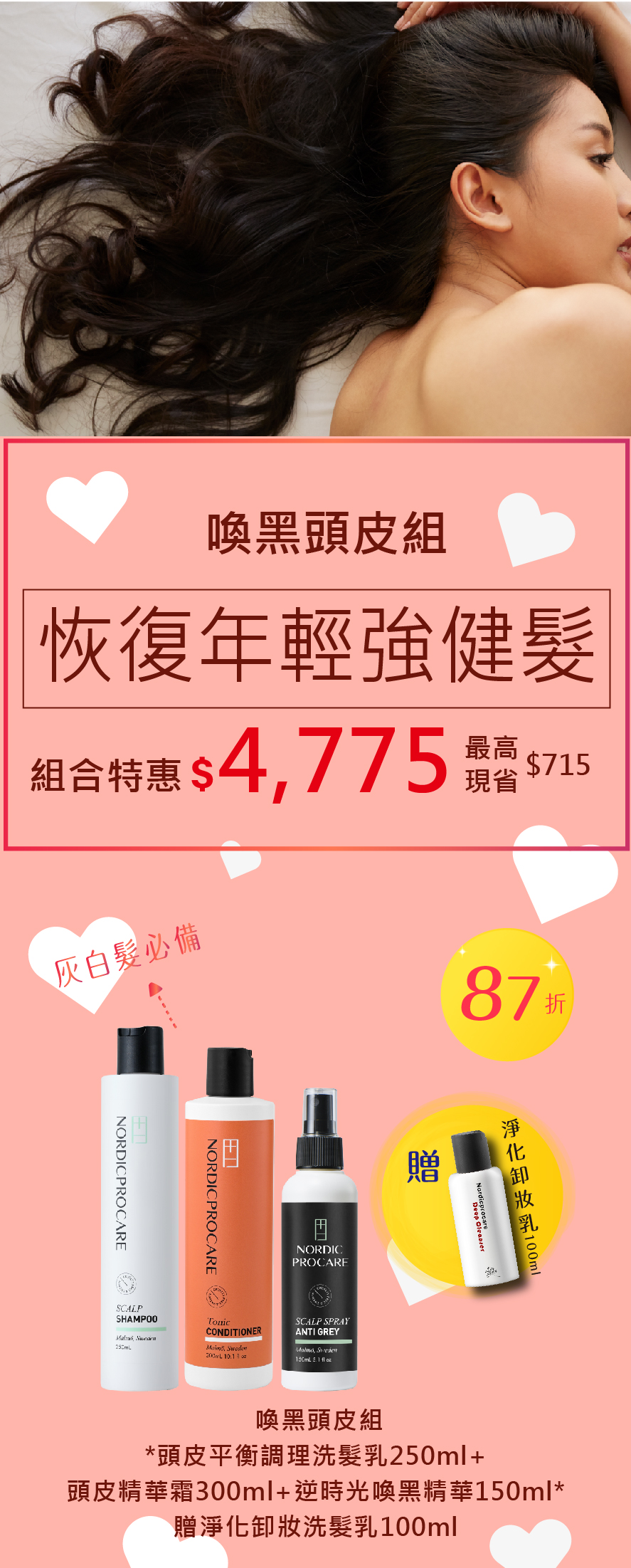 「北歐精華頭皮霜按摩霜」是針對老化頭皮使用的基礎養髮乳霜。可鎖住頭皮所需養分不流失。透過薑黃胜肽等植萃活性成分,鞏固脆弱髮根防止頭皮老化,並預防頭皮屑與頭皮出油問題。使髮絲具保濕、滋養、護色、抗熱功效,以大自然的防護機制保,讓秀髮重回初始的健康強韌。